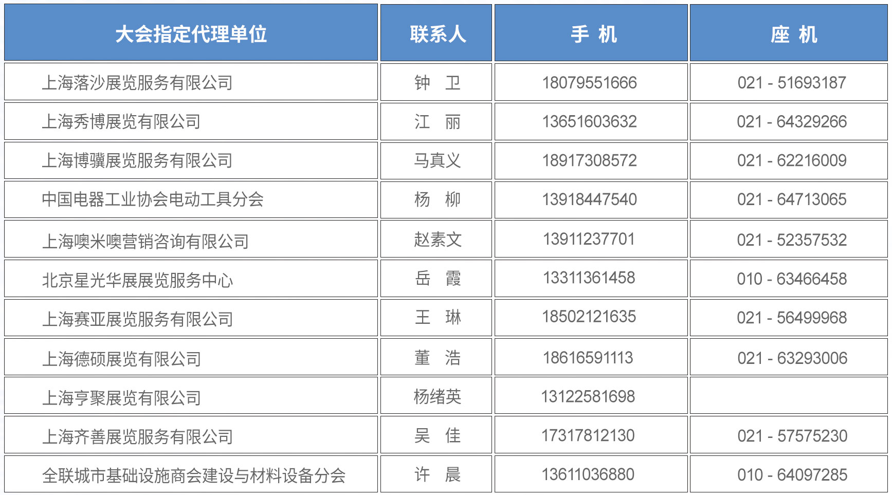 參展代理單位